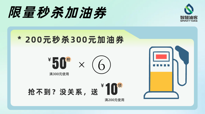 比如某加油站做了一次线上秒杀活动:200元抢购300元加油券,限额500名。如若成功秒杀到,则客户仅需支付200元就可以抢到价值300元的加油券,抢不到也可以得到一张10元加油券。