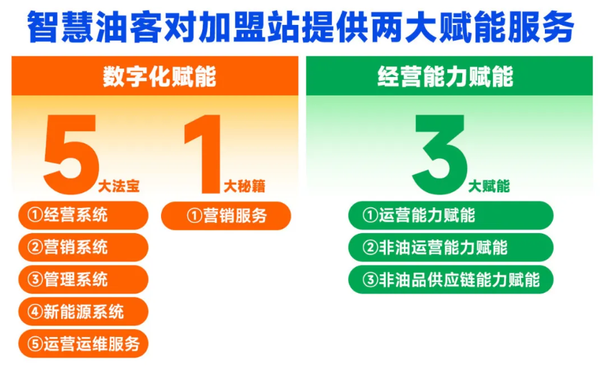 智慧油客拥有成熟的数字化系统和完善的智慧化运营与经营服务,可以为加盟站提供全面赋能支撑。