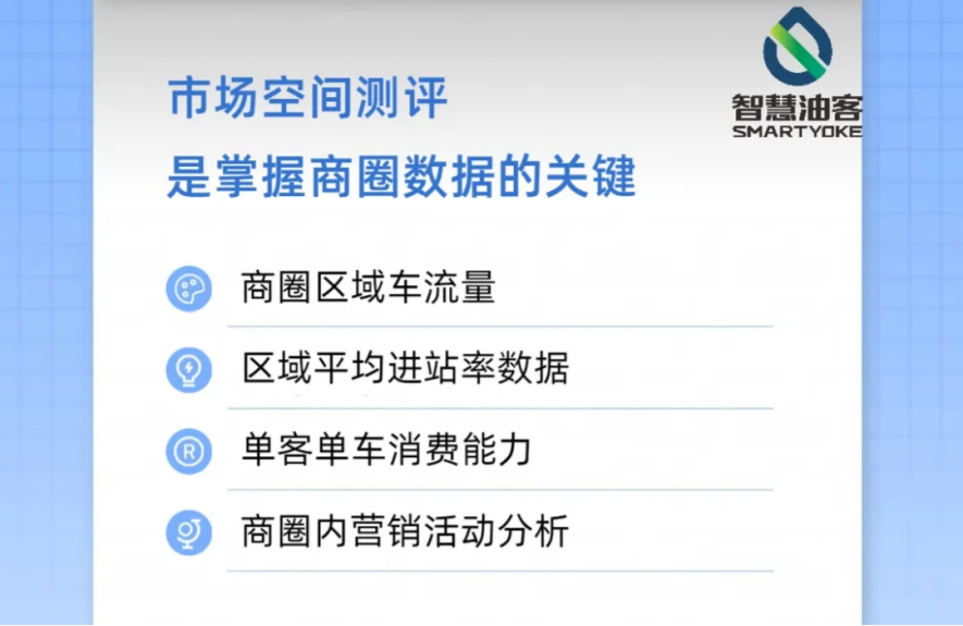 市场空间测评是掌握商圈数据的关键,包含商圈区域车流量、区域平均进站率数据、单客单车消费能力、商圈内营销活动分析等。这里面,要格外关注区域核心竞争对手的车流数据、进站加油数据,这些数据可以帮助我们了解区域内的竞争态势和各站的核心客户流量。