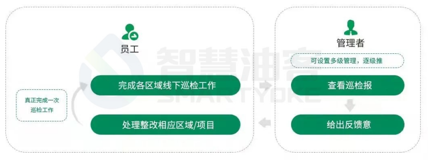 智能化巡检通过系统强制留痕以及人脸登录,杜绝人为篡改,员工巡检的文字+图片/视频数据实时推送给管理者,逐级向上收集意见反馈,形成工作流程闭环,迅速沟通处理,决策指导整改,及时治理消弭隐患,提高巡检工作的高效性和有效性。