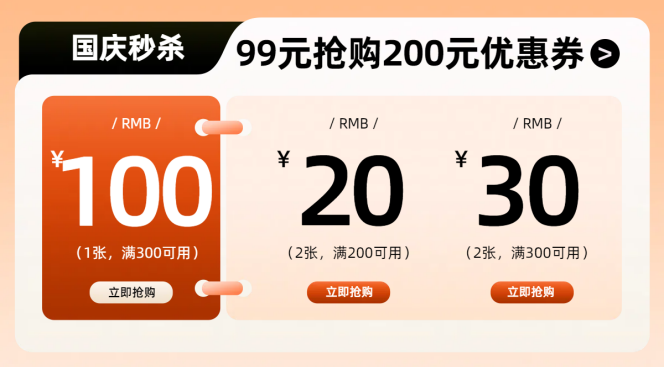 “国庆团购秒杀活动,消费立减100”: